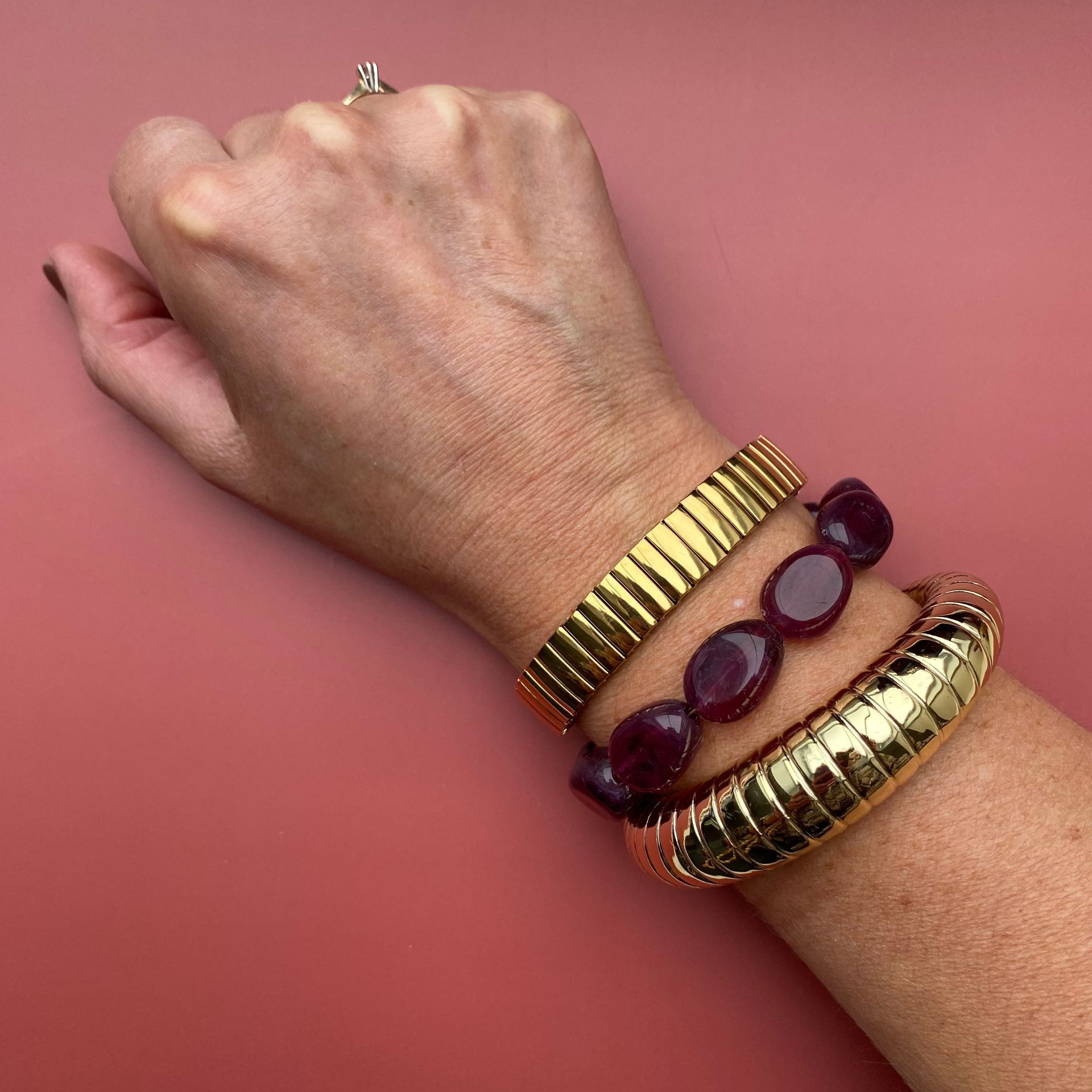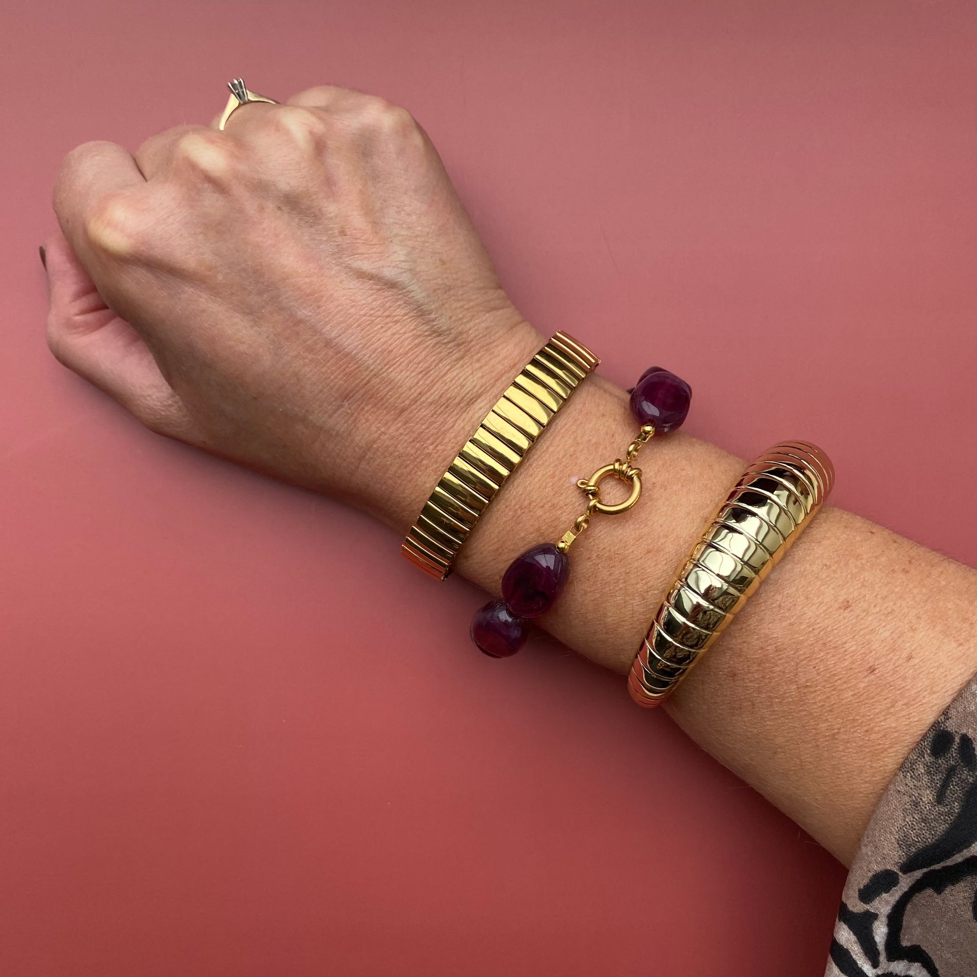 Deze trendy handgemaakte armband is helemaal leuk bij iedere outfit. Je pols trekt direct de aandacht naar zich toe vanwege de mooie warme kleur paars.