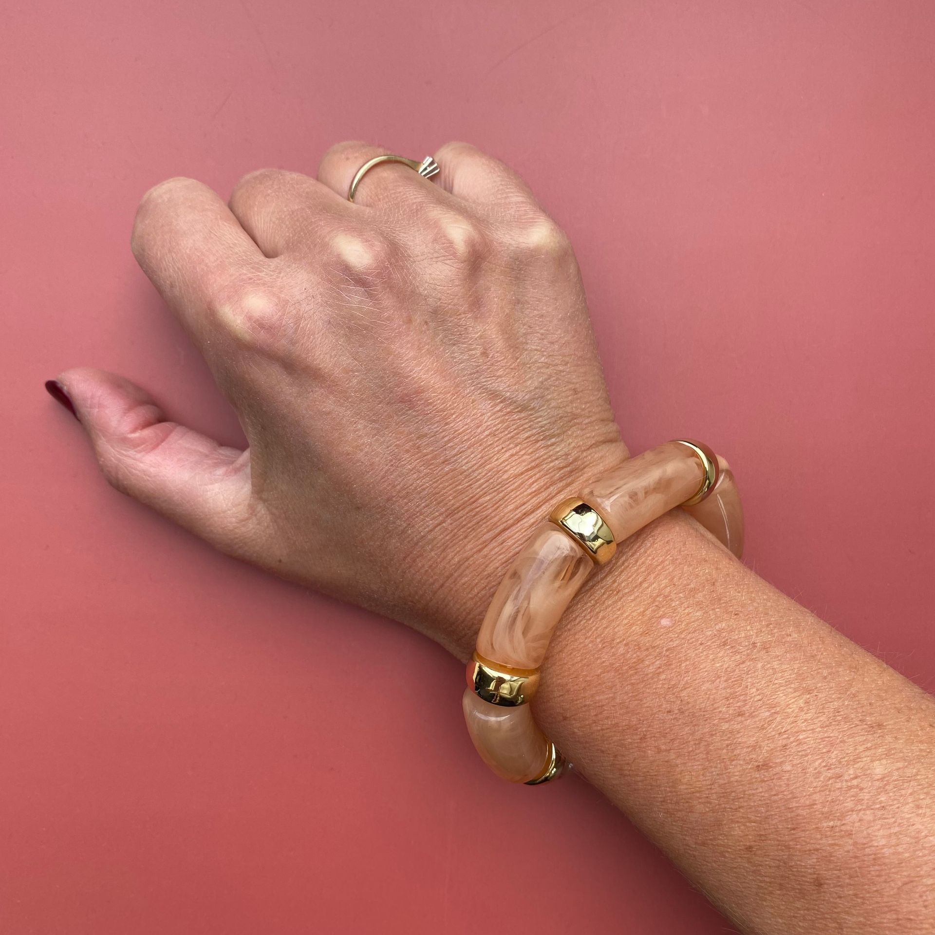 Deze armband heeft een mooie zachte kleur en past bij iedere outfit. Heel leuk te combineren met onze bangles.